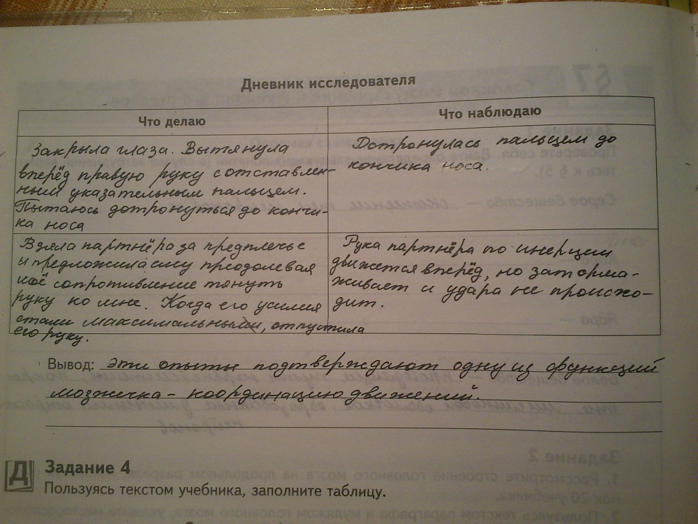 Задание 1. Проверьте на практике, что сокращение мышц подчиняется воле человека. Заполните дневник исследователя.