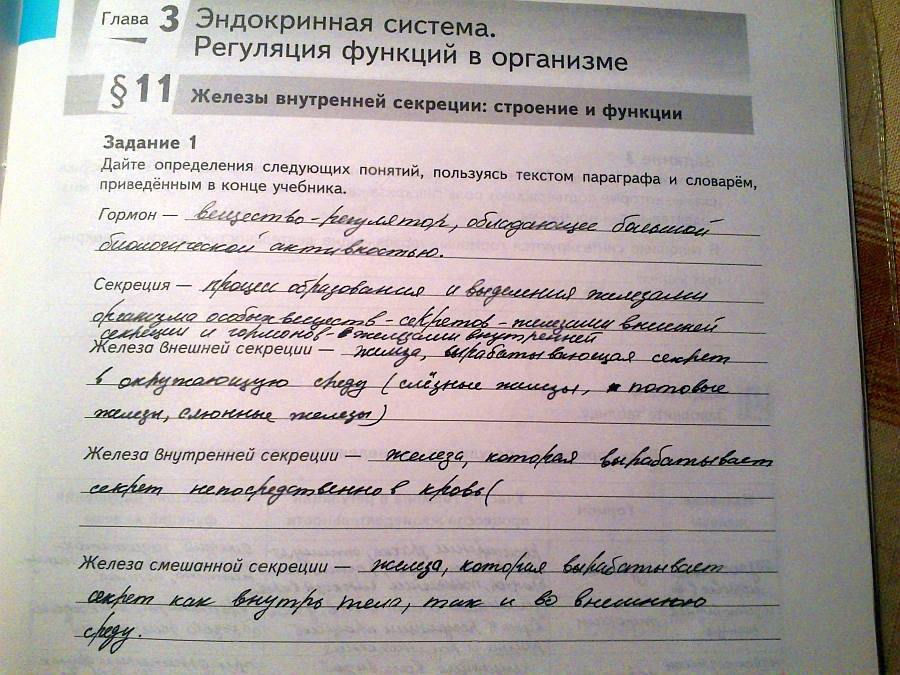 №1. Вещества, вырабатываемые железами внутренней секреции, называются гормонами. Назовите два-три гормона и железы, их вырабатывающие. Инсулин - вырабатывает поджелудочная железа; Тироксин - вырабатывает щитовидная железа; Эстрогены - вырабатывают яичники.