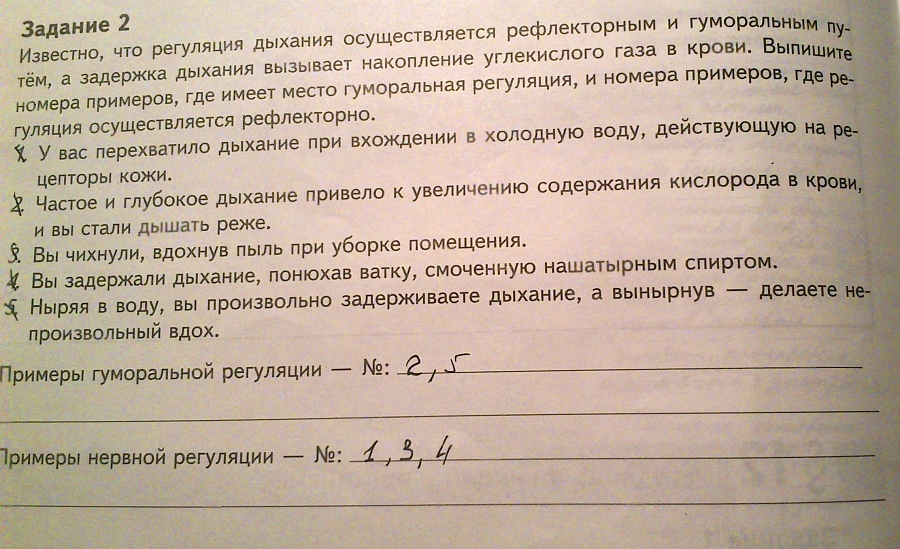 Примеры гуморальной регуляции - 2,5 Примеры нервной регуляции - 1,3,4