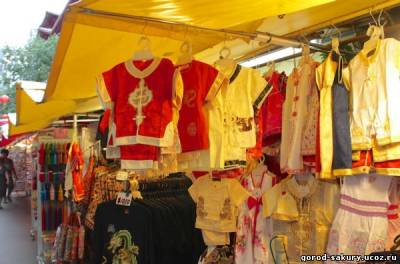 От ярких красок начинает пестрить в глазах уже через пару минут. В этихярких лотках вы сможете купить: различную электронную технику, оптику,сувенирные магниты, китайские фонарики, национальные костюмы, пряности, фрукты,настоящий китайский чай и бальзамы, статуэтки и специи, футболки, и одежду вообще, и еще кучу китайских сувениров.