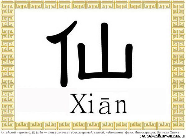 Китайский иероглиф 仙 (xiān — сянь) означает «бессмертный, святой, небожитель, фея». Он также обозначает божество или гения. /epochtimes.ru/